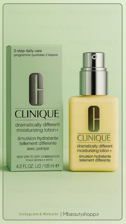 لوسیون Clinique Dramatically Different Moisturizing Lotion+ یک مرطوبکننده فوقالعاده سبک و مغذی است که برای پوستهای خشک تا نرمال طراحی شده.