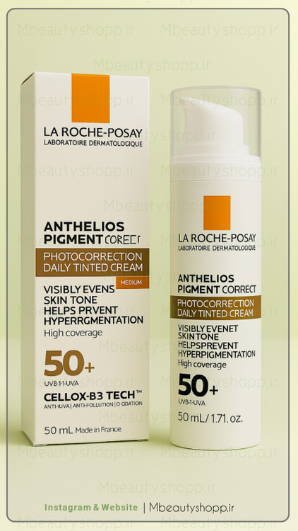 ضدآفتاب Anthelios Pigment Correct SPF 50+ یک کرم روزانه رنگی با پوشش بالا است که بهطور مؤثر از پوست در برابر UVA/UVB محافظت میکند و همزمان لکهای تیره و تیرگی پوست را کاهش میدهد.
